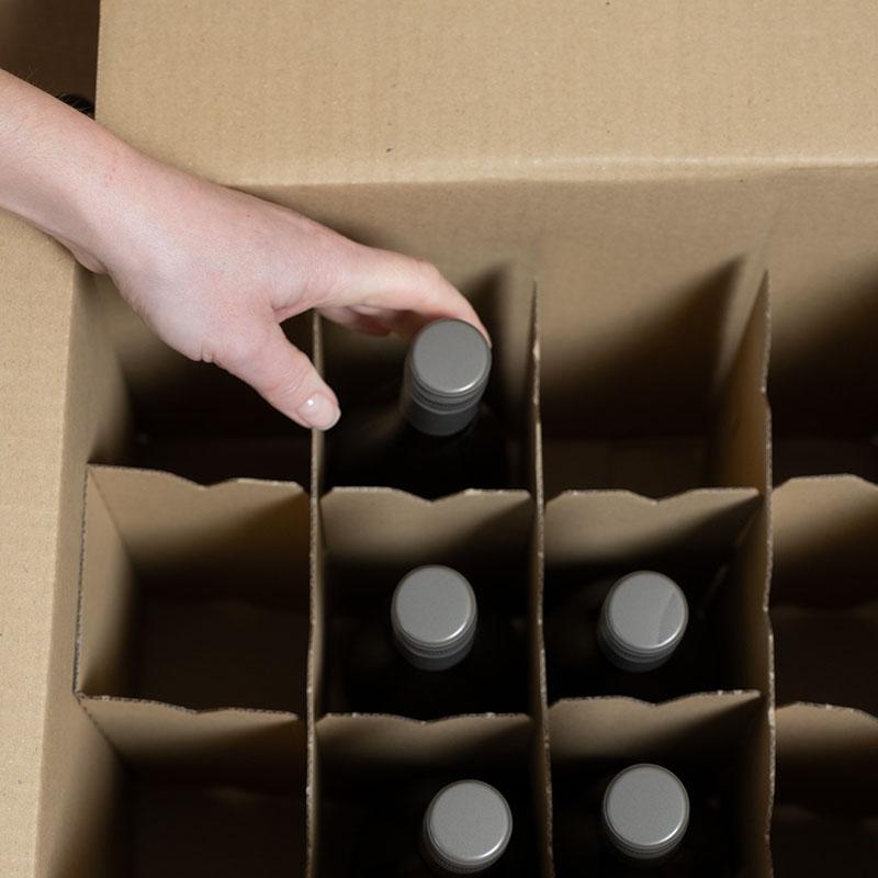Diese Kartons sind für 12 Weinflaschen geeignet.